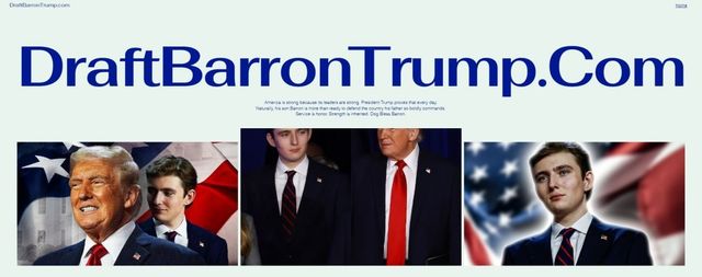 이 같은 움직임과 함께 풍자 성격의 웹사이트도 등장했다. 미국 코미디 작가 토비 모턴은 ‘DraftBarronTrump.com’이라는 사이트를 개설해 배런 트럼프의 징집을 주장하는 형식의 글을 게시했다. 해당 사이트에는 “트럼프 대통령의 아들 배런이 조국을 지킬 준비가 돼 있다”는 등의 문구가 실려 있으며 트럼프 대통령과 배런의 형들이 군 복무를 지지하는 것처럼 꾸민 인용문도 함께 게재돼 있다.