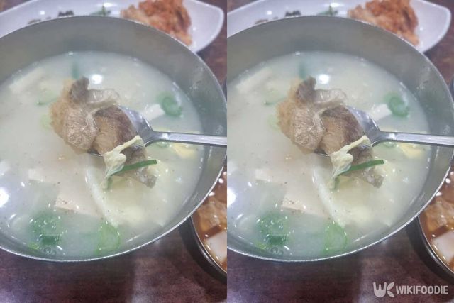 사진 속 그릇을 보면 국물 색이 뽀얗다. 이것은 뼈에서 나온 성분이 풀어지면서 만들어지는 색이다. 그 안에는 큼직한 두부 조각과 복어 살이 들어 있다. 숟가락으로 건져 올린 살점은 결이 단단하다. 일반 흰살 생선보다 탄력이 강한 편이다. 씹을수록 단맛이 올라온다.