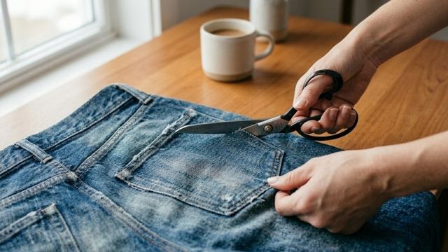 청바지가 지닌 강점 중 가장 주목해야 할 부위는 별도의 가공 없이도 즉시 독립된 수납함으로 기능할 수 있는 '뒷주머니'다. 이 부위는 이미 견고한 박음질로 마감되어 있어, 테두리를 따라 사각형으로 절개하는 것만으로도 실용적인 수납 도구가 된다.