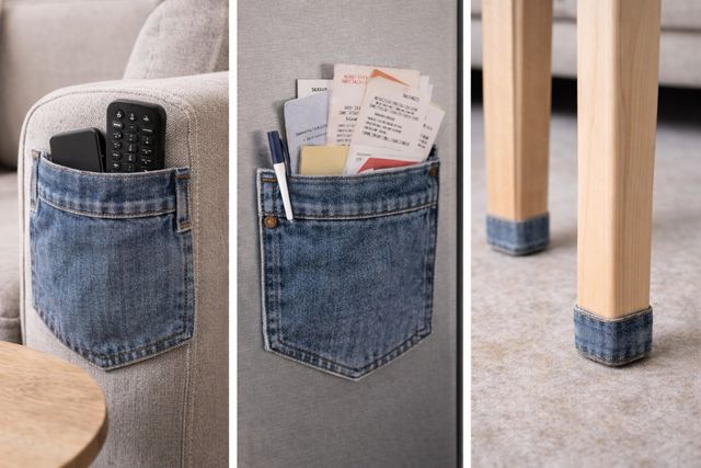 또는 바닥에 가구 흠집을 방지하는 패드로 활용할 수 있다. 방법은 매우 간단하다. 의자나 식탁 다리 바닥면에 청바지 밑단 부위를 작게 잘라 부착한다. 데님 원단은 하중 지지력이 좋아 쉽게 납작해지지 않으며, 가구를 이동할 때 층간 소음을 줄이고 바닥재의 흠집을 방지하는 보호재 역할을 한다.