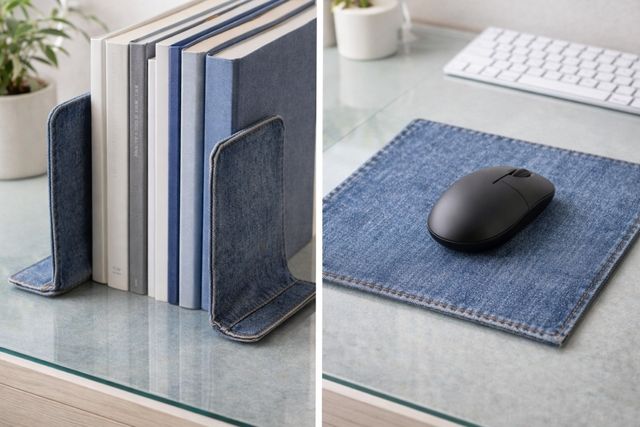데스크테리어에도 활용할 수 있다. 청바지는 저소음, 고감도 마우스 패드가 되어주기도 한다. 청바지 다리 부분의 평평한 면을 가로세로 25cm 내외로 절개하여 단단한 고무판이나 하드보드지에 부착하면 된다.