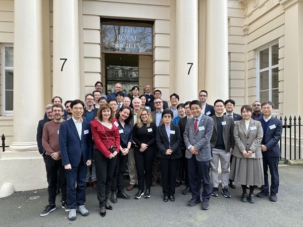 ▲ ‘제7회 한·영 리서치 콘퍼런스’가 개최된 3일(현지시간), 양국 연사 및 관계자들이 영국 런던 왕립학회 건물 앞에서 기념촬영을 하고 있다.