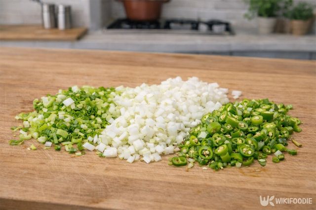 1. 양파는 잘게 다지고, 대파와 청양고추는 반으로 갈라 송송 썬다.