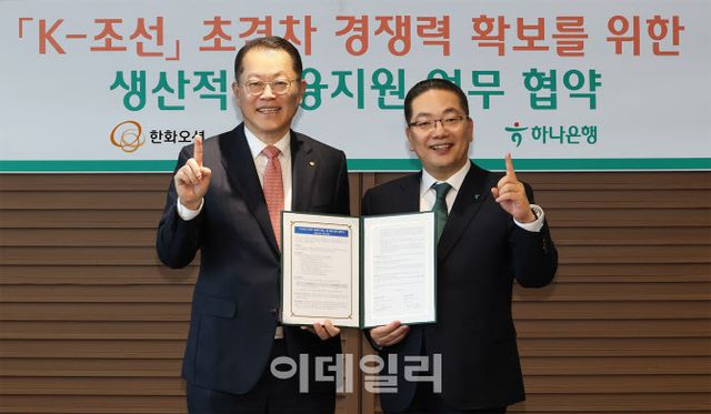 이호성 하나은행장은 “하나은행은 국가 핵심 산업에 대한 생산적 금융 지원을 지속적으로 확대해 나가고 있다”며 “한화오션과 함께 대한민국이 글로벌 조선 산업의 선도 국가로 도약하는데 마중물이 될 수 있도록 적극 협력하겠다”고 말했다.