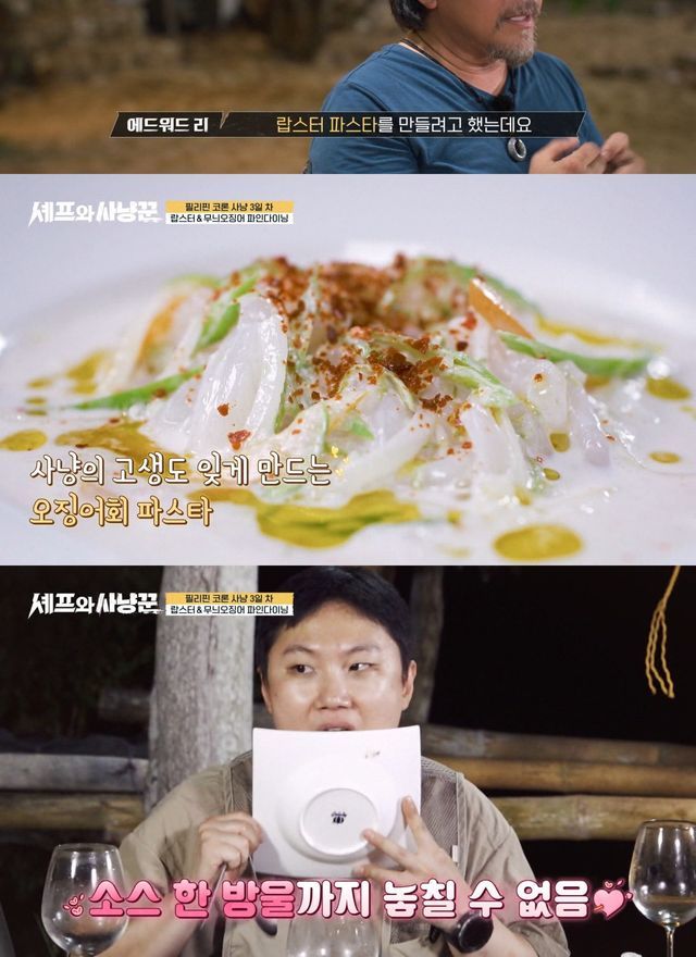 베이스캠프로 돌아온 뒤 에드워드 리는 직접 반죽한 생면으로 랍스터 파스타와 세비체 스타일 오징어회 파스타를 완성했다. 멤버들은 꽉 찬 랍스터 살과 신선한 풍미에 감탄했고, 김대호는 “랍스터와의 조화가 정말 좋다”고 극찬했다. 빠니보틀 역시 오징어회 파스타를 맛본 뒤 “너무 맛있다”며 접시에 남은 소스까지 핥아 먹는 먹방으로 만족감을 드러냈다.