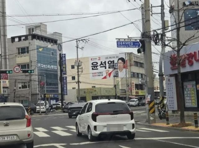 현수막에는 환하게 웃는 후보 사진과 함께 ‘윤석열’이라는 이름이 크게 박혀 있어 멀리서 보면 대통령 선거 포스터를 떠올리게 한다는 말까지 나올 정도다.