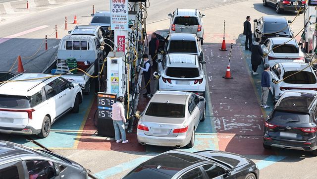 들썩이는 국제 유가에 주유소로 몰린 시민들 / 뉴스1