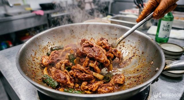 팬을 충분히 달군 뒤 양념한 오리를 넣어 볶는다. 오리고기는 자체 지방이 많기 때문에 기름을 따로 넣지 않아도 된다. 강한 불에서 볶으면 고기가 질겨지지 않고 육즙이 살아 있다.