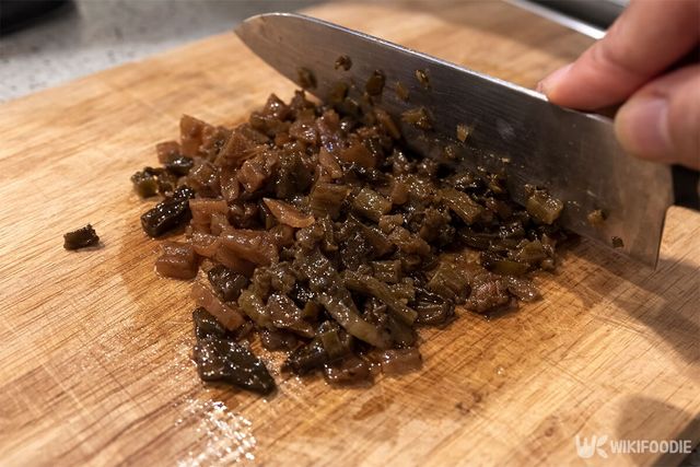 5. 마늘 절임과 다진 장아찌를 한데 섞는다.