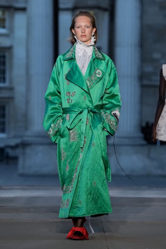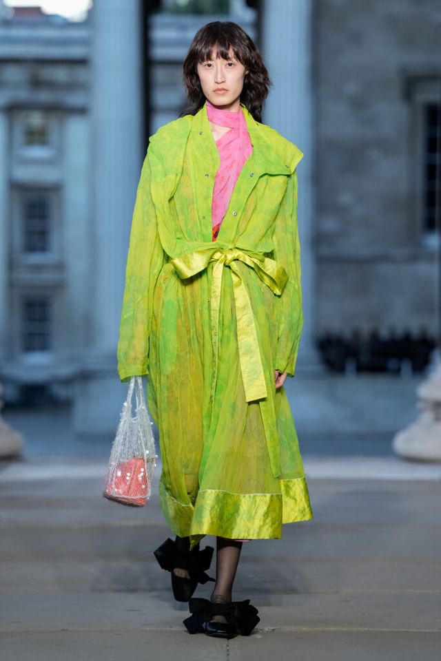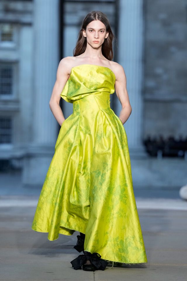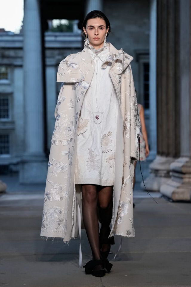 NOTE 심령술사이자 예술가인 엘렌 스미스(Hélène Smith)에게 영감을 받은 에르뎀. 그가 남긴 독창적 상상력과 다층적 페르소나를 패션의 언어로 번역했다. 에르뎀은 그가 프랑스의 귀족이었다고 주장한 자아는 빅토리아시대풍의 과장된 실루엣으로, 인도 공주였다는 환상은 인디안 실크의 오리엔탈풍으로, 화성인과 교감한다는 초현실적 이야기는 애시드 컬러와 미래적 디테일로 재해석한다. 에르뎀의 손끝에서 재창조된 그의 상상이 ‘멀티 페르소나의 시대’를 살아가는 현대인의 모습과 겹치는 것은 무엇 때문일까. 환상과 현실, 과거와 미래를 한자리에 공존시킬 수 있는 드라마틱한 패션의 힘을 보여준 쇼.