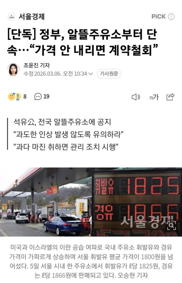 정부, 알뜰주유소부터 단속…“가격 안 내리면 계약철회” | 서울경제