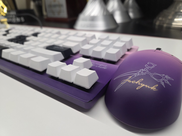 휠체어 외에도 눈에 띄는 게 하나 더 있었다. 권 선수는 자신의 이름이 적힌 보라색 마우스와 키보드를 사용하고 있었다. 그는 쑥스러운 표정으로 "오프라인에서 만난 팬 분들이 커스텀 마우스와 키보드를 선물해주셨다"고 했다. 디플러스 기아 및 게임 커뮤니티 곳곳에서 권 선수의 도전을 응원하는 글을 다수 찾아볼 수 있는데, 온라인을 넘어 오프라인으로도 권 선수를 향한 애정이 전해지고 있음을 알 수 있었다.