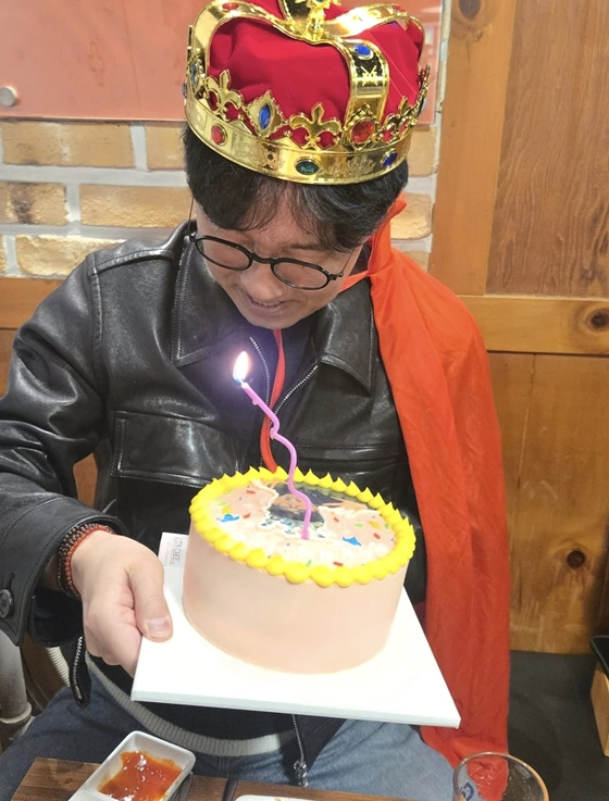 사진에는 장항준 감독이 빨강과 금장으로 장식된 왕관을 쓰고 케이크를 들고 있는 모습이 담겼다. 장항준 감독은 케이크에 꽂힌 촛불을 바라보며 머쓱한 미소를 짓고 있어 눈길을 끌었다. 장항준 감독 특유의 유쾌하고 장난기 어린 분위기가 사진에 고스란히 묻어나 훈훈함을 자아낸다. 송은이는 장항준 감독이 소속된 매니지먼트사 미디어랩시소의 대표다.