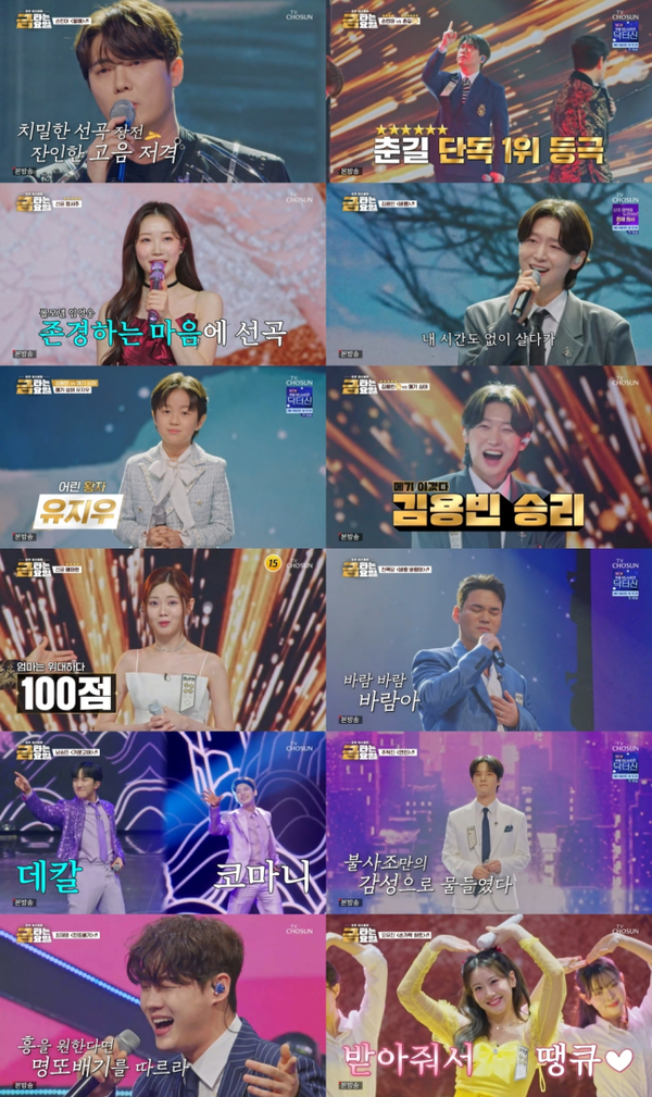 현재 춘길이 6개의 별로 가장 앞서나가는 가운데 김용빈, 정서주, 배아현이 5개의 별로 턱밑까지 추격하며 골든컵을 향한 경쟁은 더욱 뜨거워질 전망이다. 과연 누가 가장 먼저 영예의 골든컵을 거머쥘지 시청자들의 기대가 모이고 있다.