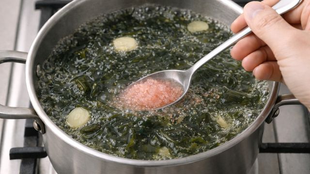 만약 싱겁다면 소금 1/3스푼을 넣고 취향에 따라 간을 맞추면 된다. 뚜껑을 닫고 약불로 10분간 더 끓이면 명란 미역국이 완성된다.