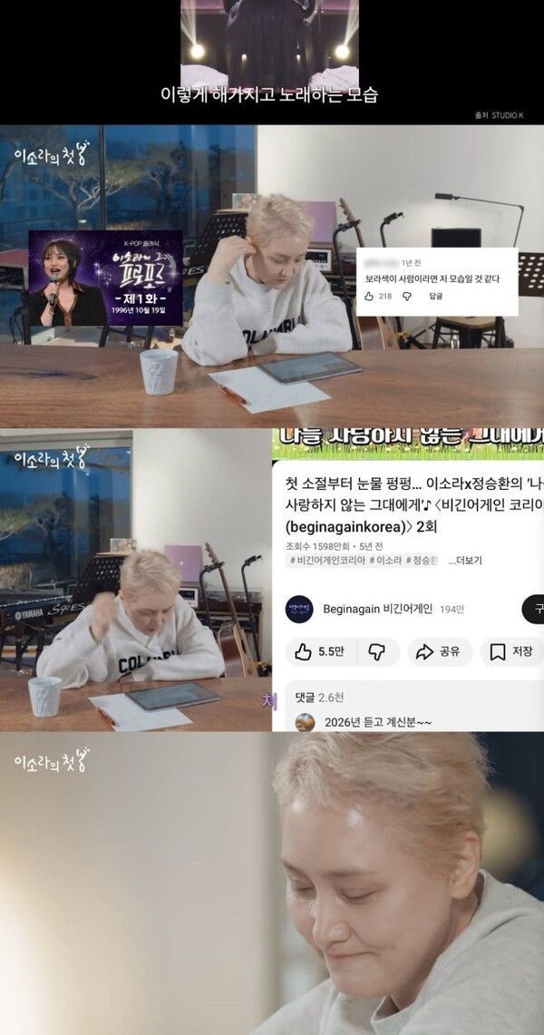 지난 6일 이소라의 공식 유튜브 채널에는 이소라의 첫봄이라는 제목의 영상이 공개됐다. 이는 과거 JTBC 히든싱어 출연 이후 약 5년 5개월 만의 공식 행보로, 팬들의 뜨거운 관심을 받고 있다.