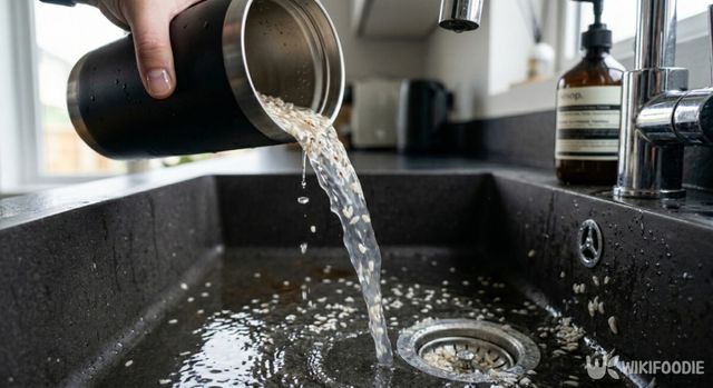 뚜껑을 열어 보면 물이 뿌옇게 변하고, 밥알에 작은 찌꺼기가 붙어 있는 모습을 확인할 수 있다. 이 상태에서 밥과 물을 버린 뒤, 깨끗한 물로 여러 번 헹군다. 헹굴 때도 텀블러를 가볍게 흔들어 구석까지 물이 닿게 하면, 안에 남은 밥알까지 쉽게 제거된다.