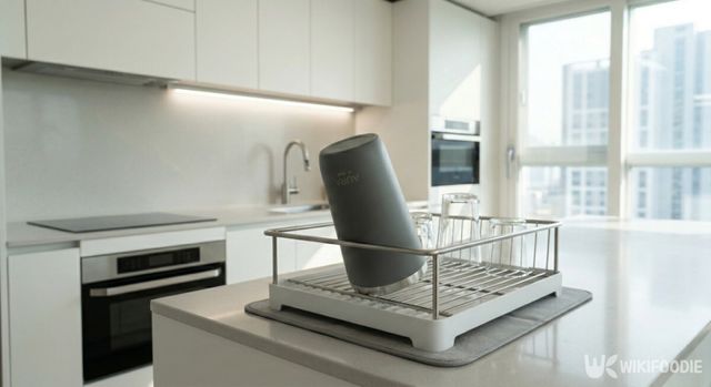 텀블러를 말릴 때는 입구를 완전히 아래로 향하게 두기보다는 약간 기울여 세워 두는 방식이 좋다. 그래야 내부 공기가 흐르면서 물기가 더 빨리 마른다.