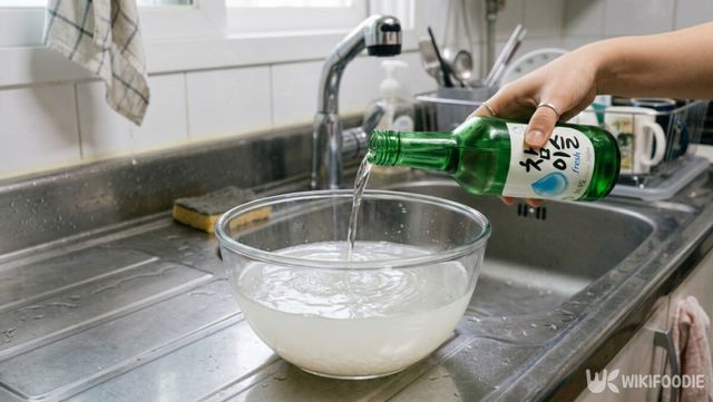 이런 상황에서는 기름을 풀어낼 수 있는 성분이 필요하다. 집에서 쉽게 구할 수 있는 재료 가운데, 소주가 이런 역할을 한다. 소주에 들어 있는 알코올 성분은 기름과 섞이기 쉬운 성질을 갖고 있어, 바닥 표면에 붙은 끈적한 기름층을 풀어내는 데 도움을 준다.