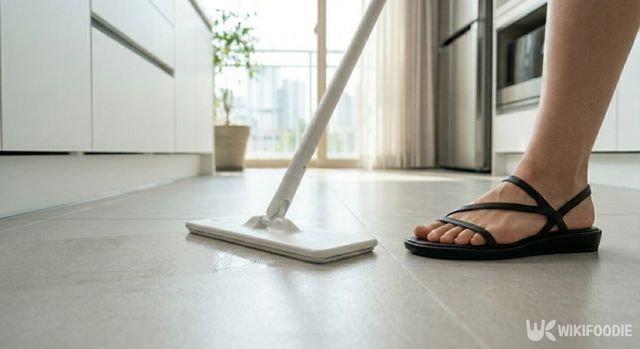 주방 바닥은 매일 사용하는 공간이라 눈에 보이지 않는 오염이 계속 쌓인다. 쌀뜨물을 모아 뒀다가 소주와 섞어 쓰는 방법만으로도 주방 바닥 위생을 지킬 수 있다.