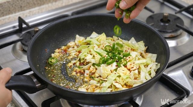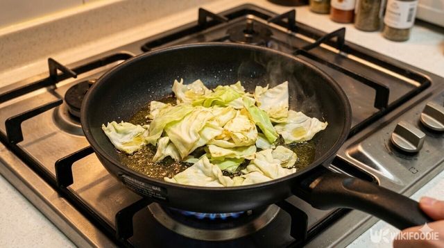 3. 물을 한두 큰술 넣어 양배추가 타지 않고 부드럽게 익도록 돕는다.