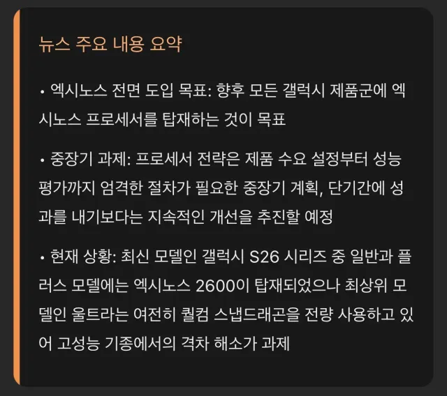 삼성전자는 수년 동안 자사 모바일 프로세서인 엑시노스 발전에 힘을 쏟아왔지만 수율과 소비 전력 제어 성능 면에서 다소 뒤처지며 고사양 스마트폰에서는 여전히 퀄컴 스냅드래곤 칩에 상당 부분 의존해 왔습니다. 하지만