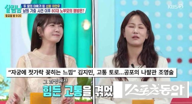무엇보다 김지민은 2세 준비 사실을 직접 밝혔다. 그는 “원래는 자연임신을 시도했는데 둘 다 노산”이라며 “얼마 전 시험관 시술 전 조영술을 했는데 정말 말도 안 되는 아픔을 겪었다”고 고백했다.