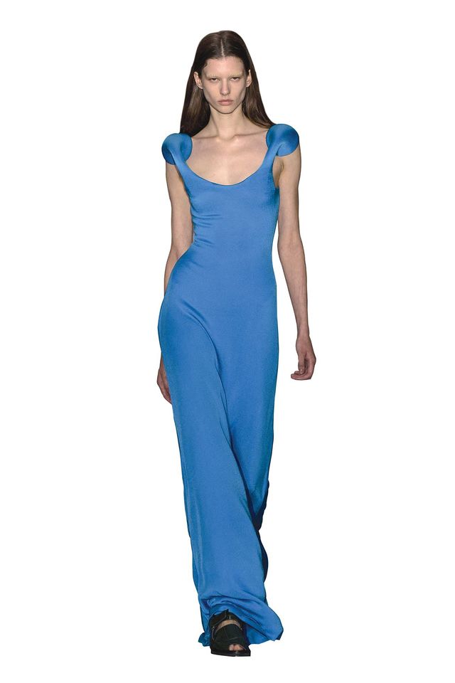 베네콤에게 물었다. 듀란 랜팅크에게 유머란 무엇일까. “유머는 독립의 한 형태라고 생각해요. 패션 산업의 규칙과 관행, 그 시스템 바깥에 있는 사람만이 무심한 태도를 취할 수 있죠. 듀란은 매우 신중한 사람이에요. 그렇기 때문에 신경을 쓰지만 안 쓴 것처럼 보이죠. 그 안에는 배려와 엄격함, 놀이 같은 가벼움이 동시에 존재합니다. 바로 그 균형이 그의 패션을 특별하게 만들어요. 이런 스타일은 정말 오랜만이죠.”
