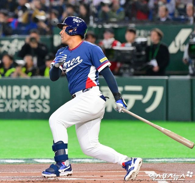결정적인 찬스 앞에 선 3번 이정후는 초구 시속 96마일의 빠른 볼에 그대로 배트를 냈다. 잘 맞은 타구는 좌익수 앞에 떨어지면서 3루 주자 김도영을 홈으로 불러들이는 데 성공했다. 한국이 선취점을 내는 순간이었다.