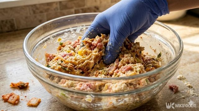 모든 재료가 들어갔다면 만두소처럼 찰진 상태가 될 때까지 골고루 치대며 섞어준다.