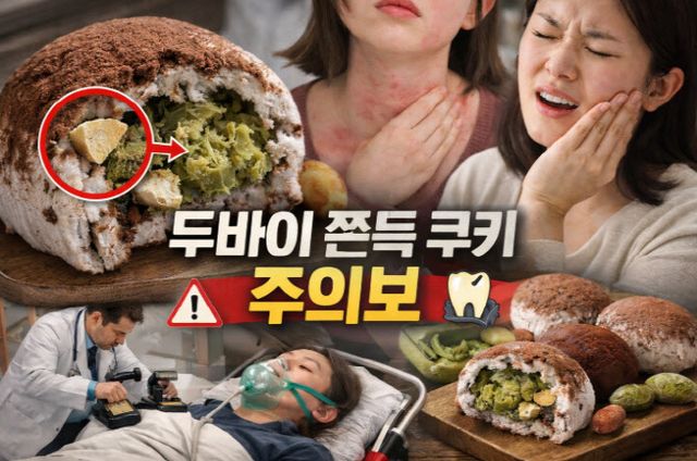 두바이 쫀득 쿠키는 카다이프와 피스타치오 크림 등을 넣은 속재료를 코코아 가루를 섞은 마시멜로로 감싸 만든 디저트로, 밀·우유·견과류 등 다양한 알레르기 유발물질이 포함돼 있어 섭취 시 주의가 필요하다.