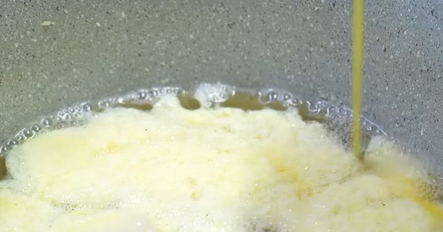 계란은 그릇에 깨서 미리 풀어 둔다. 젓가락으로 노른자와 흰자가 잘 섞이도록 풀어 주면 된다. 계란을 너무 거품 나게 푸는 것보다는 부드럽게 섞는 정도가 좋다.
