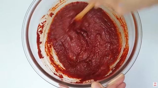 딸기잼에 고춧가루와 청주를 넣어 섞는 모습. / 유튜브 '주부나라'