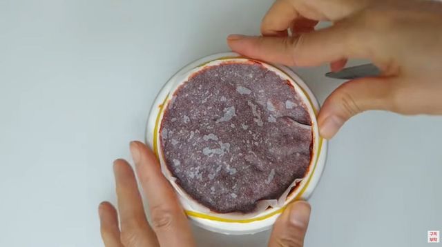 완성된 고추장에 종이호일을 잘라 덮어준 후 고무줄로 고정하는 모습. 곰팡이가 방지된다. / 유튜브 '주부나라'