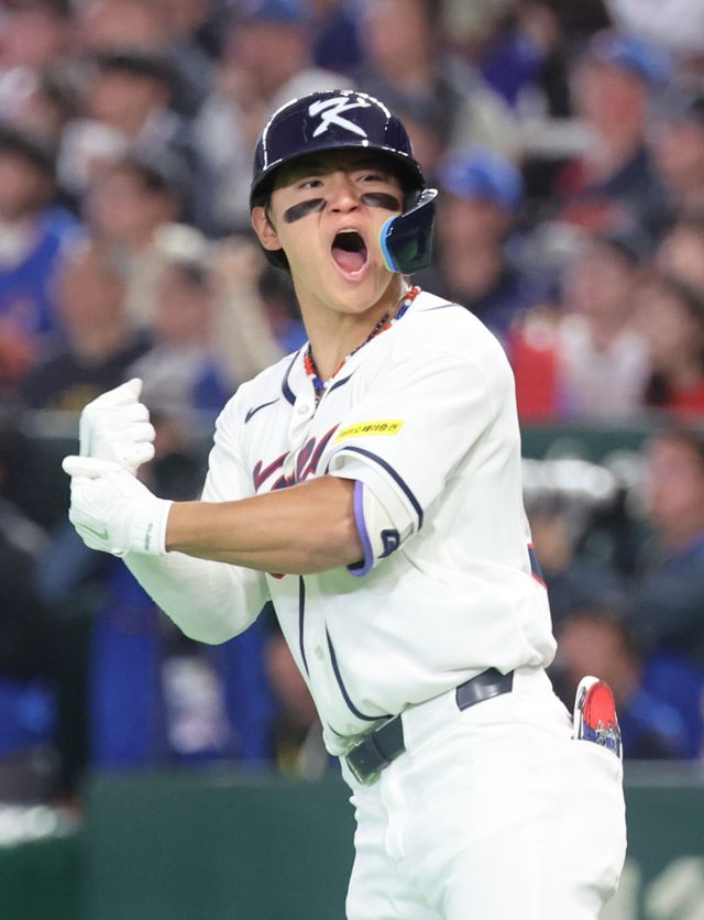 한국은 8회 초 혼혈 빅리거 스튜어트 페어차일드(클리블랜드 가디언스)에게 역전 투런 홈런을 허용했다. 이번에도 해결사는 역시 김도영이었다. 3-4로 뒤진 8회 말 2사 1루 상황에서 타석에 들어선 김도영은 오른손 불펜 쑨이레이(니혼햄 파이터스)의 94.6마일(152.2㎞/h) 포심 패스트볼을 우중간을 가르는 동점 2루타로 연결했다.