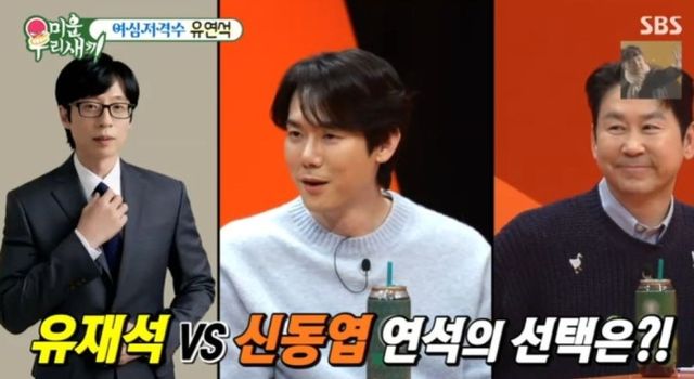 유연석은 8일 방송된 SBS 예능프로그램 ‘미운 우리 새끼’에서 두 MC의 차이에 대해 “재석이 형은 밖에서도 만나지만 동엽이 형은 일어나서 만난 적이 없다”며 신동엽의 ‘좌식 예능’ 스타일을 언급해 웃음을 자아냈다.