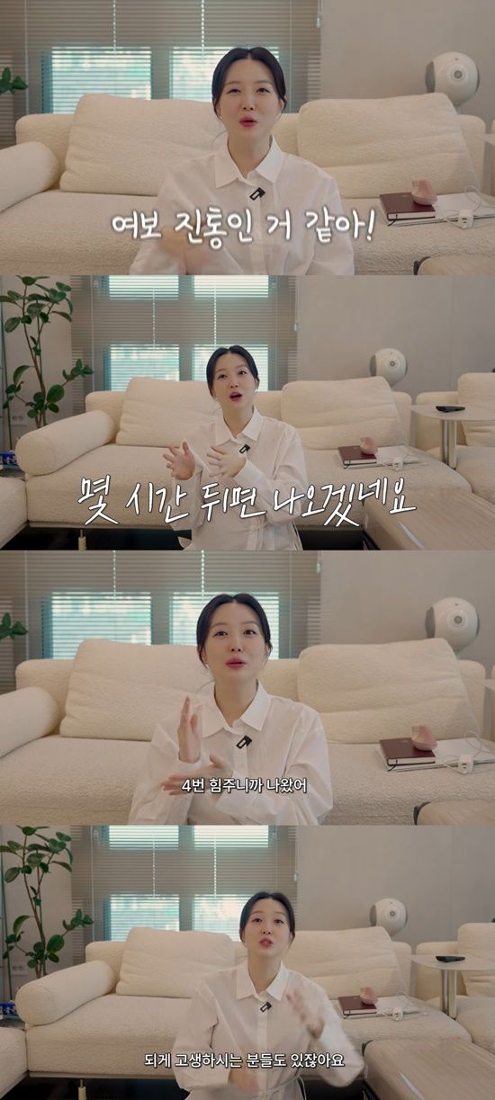 이어 "첫째 분만 당시 유도를 했다. 진통이 거의 없었다"며 "병원에 갔는데 다음 날 나올 것 같다고 했다. 그래서 남편이 다음 날 있던 스케줄을 모두 조정하고 출산에 함께했다"고 설명했다.