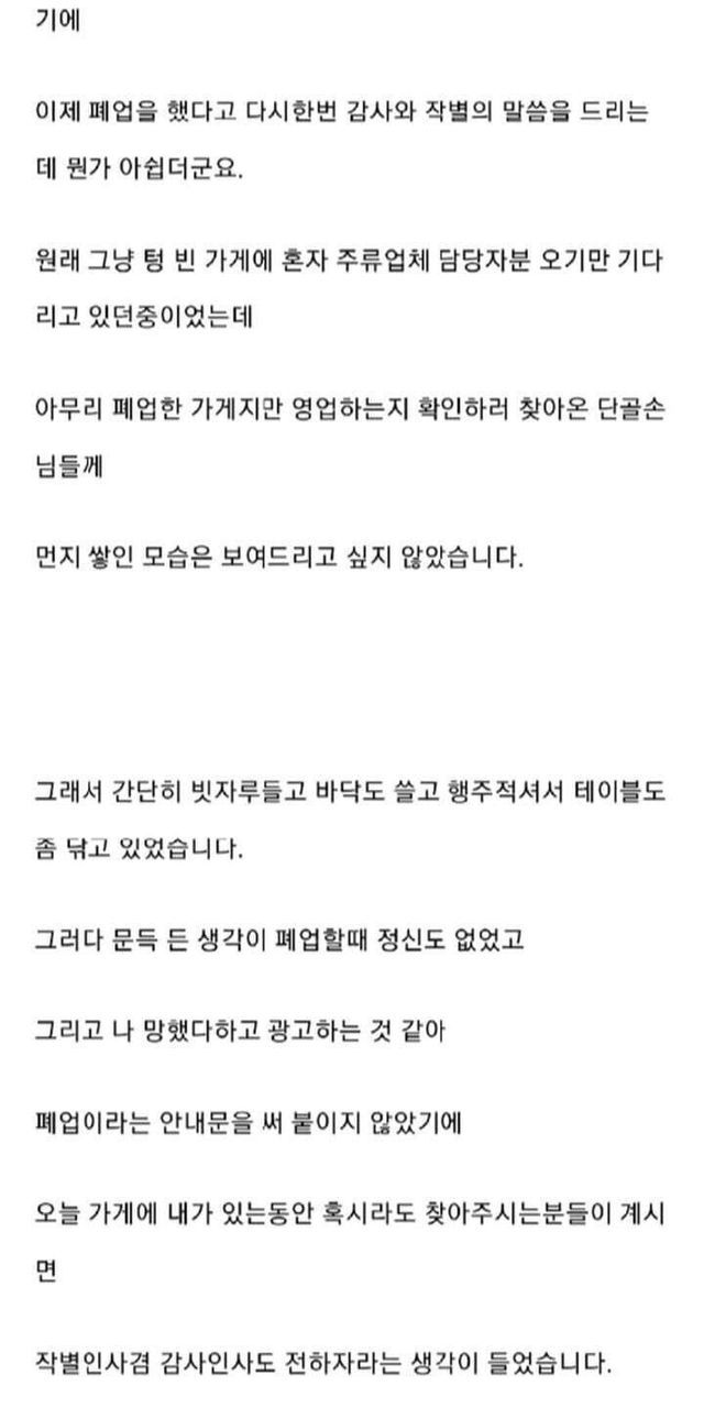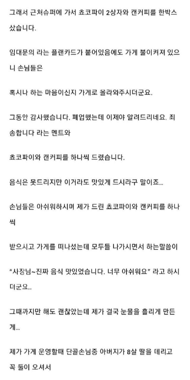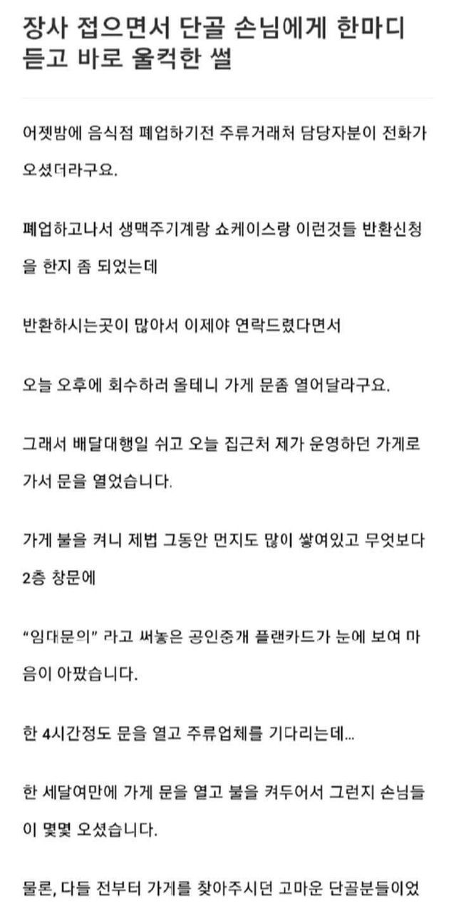 장사 접으면서 단골 손님에게 한마디 듣고 울컥한 썰 .jpg