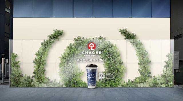강남 플래그십 매장 외벽에는 반투명 유리 파사드를 배경으로 아치 형태의 녹색 식물을 적용한 대형 호딩이 설치됐다. 중앙에는 도심 속 차 숲으로 들어가는 입구를 연상시키는 시그니처 컵 대형 오브제를 배치해 ‘모던 티 하우스’ 콘셉트를 강조했다. 용산 아이파크몰점과 신촌점은 각 공간 특성에 맞춘 그래픽 중심의 호딩을 선보일 예정이다.