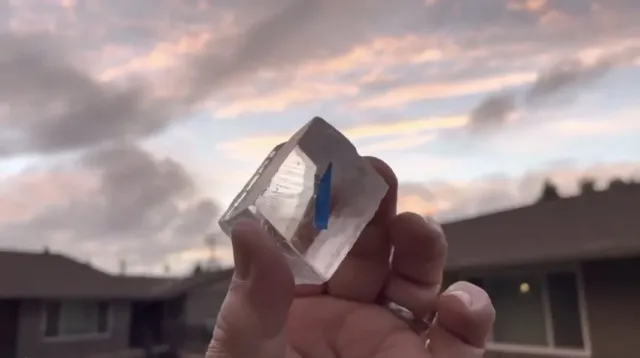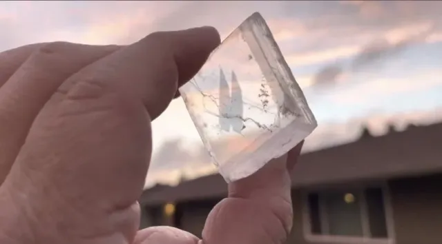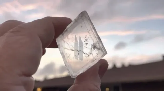 방해석 한쪽에 물체를 하나 붙이고 반대편을 들여다보면
