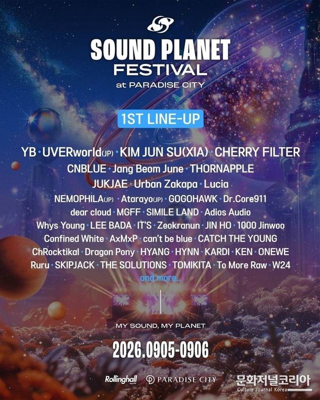 ‘사운드플래닛페스티벌 2026’은 오는 9월 5일과 6일 양일간 파라다이스시티(PARADISE CITY)에서 펼쳐지며 ‘My Sound, My Planet’을 메인 슬로건으로 내세워 사운드플래닛의 확장된 정체성과 방향성을 예고한다.