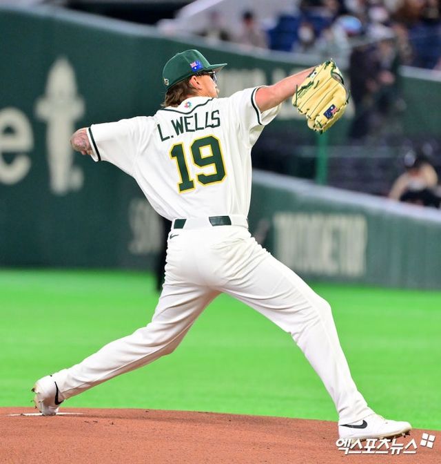 올 시즌 LG 트윈스에서 뛰는 호주 선발 라클란 웰스를 상대로 한국은 1회 침묵했다. 선두타자 김도영이 하이 패스트볼에 밀리며 2루수 뜬공 아웃됐고, 존스도 3루수 파울플라이로 돌아섰다. 이정후까지 2루수 땅볼로 물러나며 삼자범퇴로 끝냈다.