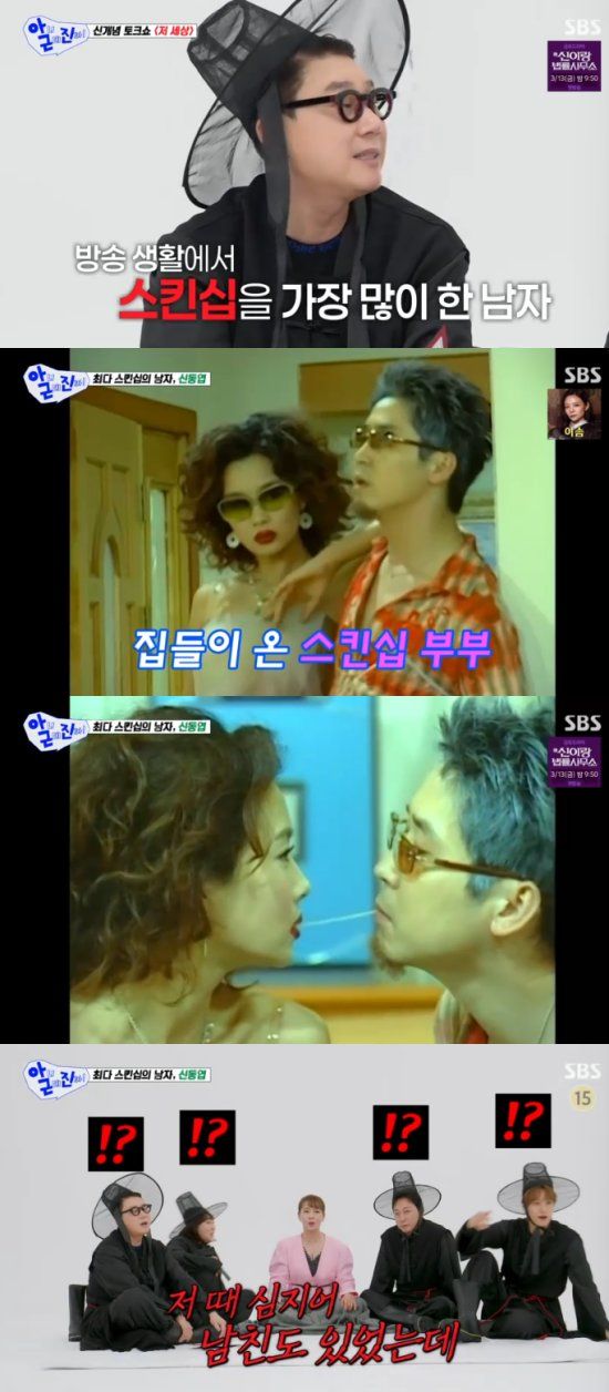 이날 이상민은 김원희의 과거를 파헤치면서 "남자를 꽤 좋아했다. 방송 생활에서 스킨십 가장 많이 한 남자가 있다"면서 신동엽을 언급했다. 그 과정에서 24년 전 함께 콩트를 했던 김원희와 신동엽의 영상이 공개됐다.