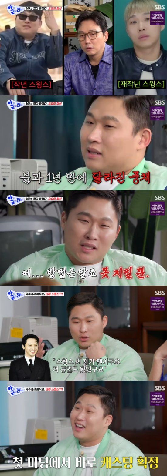 또 이상민은 스윙스에게 "요요가 너무 자주 온다고?"라고 물었고, 스윙스는 "요요를 30번 정도 겪었다. 저는 30kg이 찌는데 얼마 안 걸린다. 그런데 뺄 때는 1년이 넘게 걸린다. 다이어트 방법은 아는데 못 지킬 뿐"이라고 말해 공감을 자아냈다.