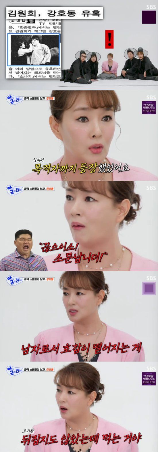 또 이날 김원희는 세간을 떠들썩하게 했던 자신의 첫 스캔들을 회상했다. 상대는 강호동. 김원희는 "유일한 스캔들 상대였다. 당시 분위기가 진지했다. 녹화 중에 기자들이 찾아와 확인을 했고, 목격자가 있다는 이야기도 있었다"고 했다.