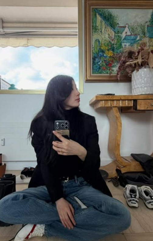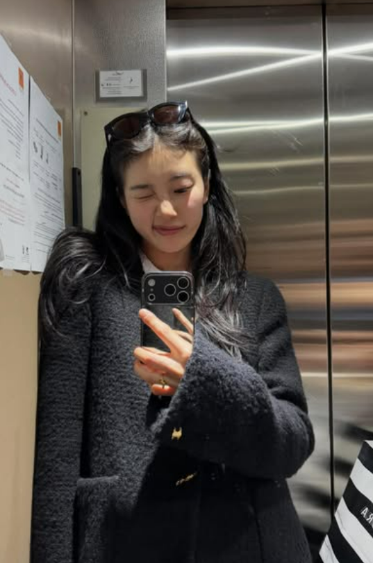 실내에서 포착된 수지는 또 다른 매력을 전했다. 화려한 금빛 난간이 돋보이는 계단 위에서 블랙 재킷을 입고 포즈를 취하며 고급스러운 분위기를 연출하는가 하면, 거울 셀카를 통해 특유의 맑은 미소와 윙크를 날리며 팬심을 저격했다.