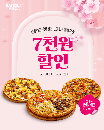 피자앤컴퍼니의 반올림피자는 LG유플러스 멤버십 프로그램 '유플투쁠'과 연계해 전 메뉴 7000원 할인 쿠폰을 제공하는 프로모션을 실시한다고 밝혔다.