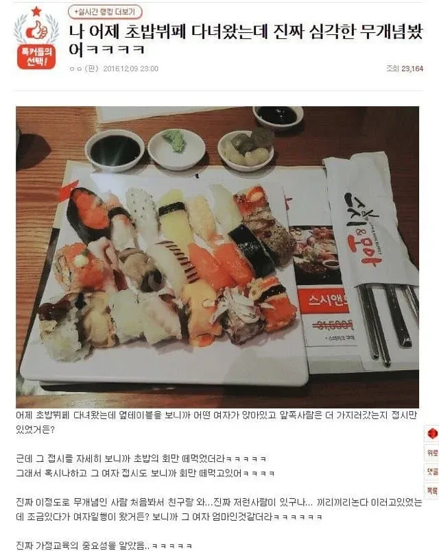 초밥뷔페가서 회만 골라먹기