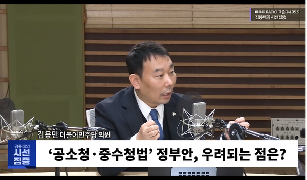 김 의원은 10일 MBC라디오 <김종배의 시선집중> 에서 검찰개혁안을 두고 당·정 간 조율하는 과정에서 의견을 제기할 기회를 받지 못했다고 주장했다. 김종배의>