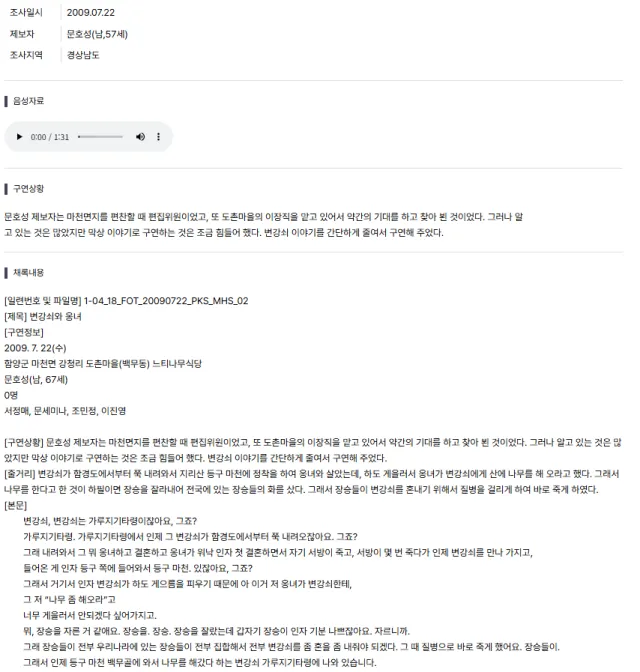 전국장승회의에 회부되어 동티를 입어 죽게되었다는 이야기가 나온다.